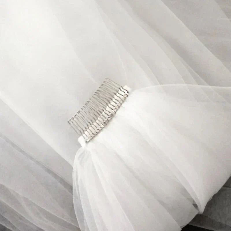 Enhance your bridal ensemble with this exquisite two-layer elbow-length veil, meticulously crafted to elevate your wedding day look.