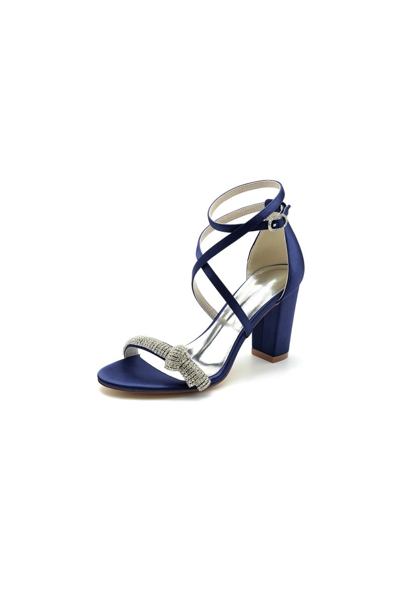 Add a touch of sophistication to any special event with these Ankle Strap Block Heels with Silver Chain. Featuring an elegant rhinestone accents, these shoes are perfect for a wedding, party, or evening occasion. The chunky heel and open toe design offer comfort and style, while the rubber sole material looks more elegant. Crafted with comfort in mind, they are ideal for any formal occasion.