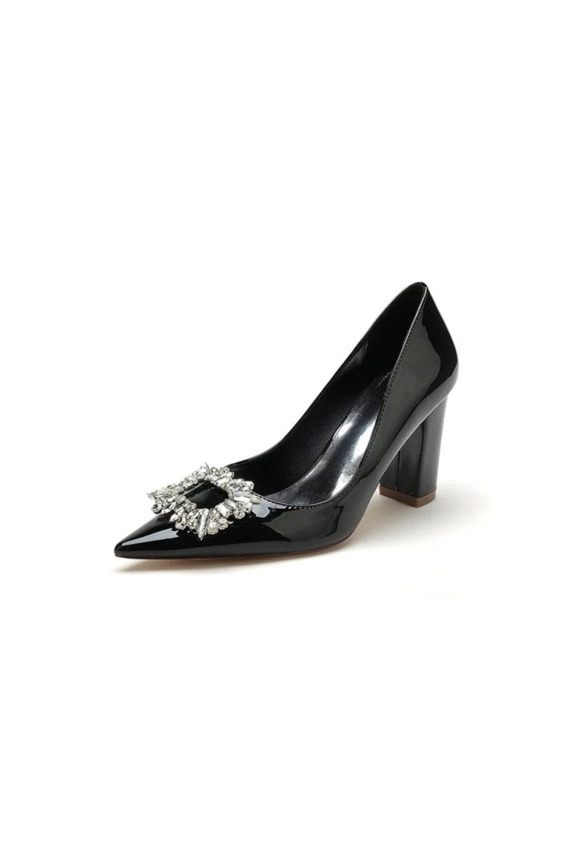 Indulge in pure elegance and sophistication with these exquisite nude pink high heels. Meticulously designed with impeccable attention to detail, the glossy finish of the shoes radiates in the light. The captivating design boasts a dazzling crystal embellishment at the toe, adding a touch of opulence to the overall aesthetic. The uniform pink hue is flawlessly refined, devoid of any blemishes. The high-quality material, possibly patent leather, ensures durability and effortless style. The thick and sturdy heel offers optimal support and stability for the wearer. A coveted addition to any fashion-forward wardrobe, these embellished pink high heels effortlessly elevate any ensemble, from graceful dresses to chic trousers, exuding luxury and sophistication wherever you go.