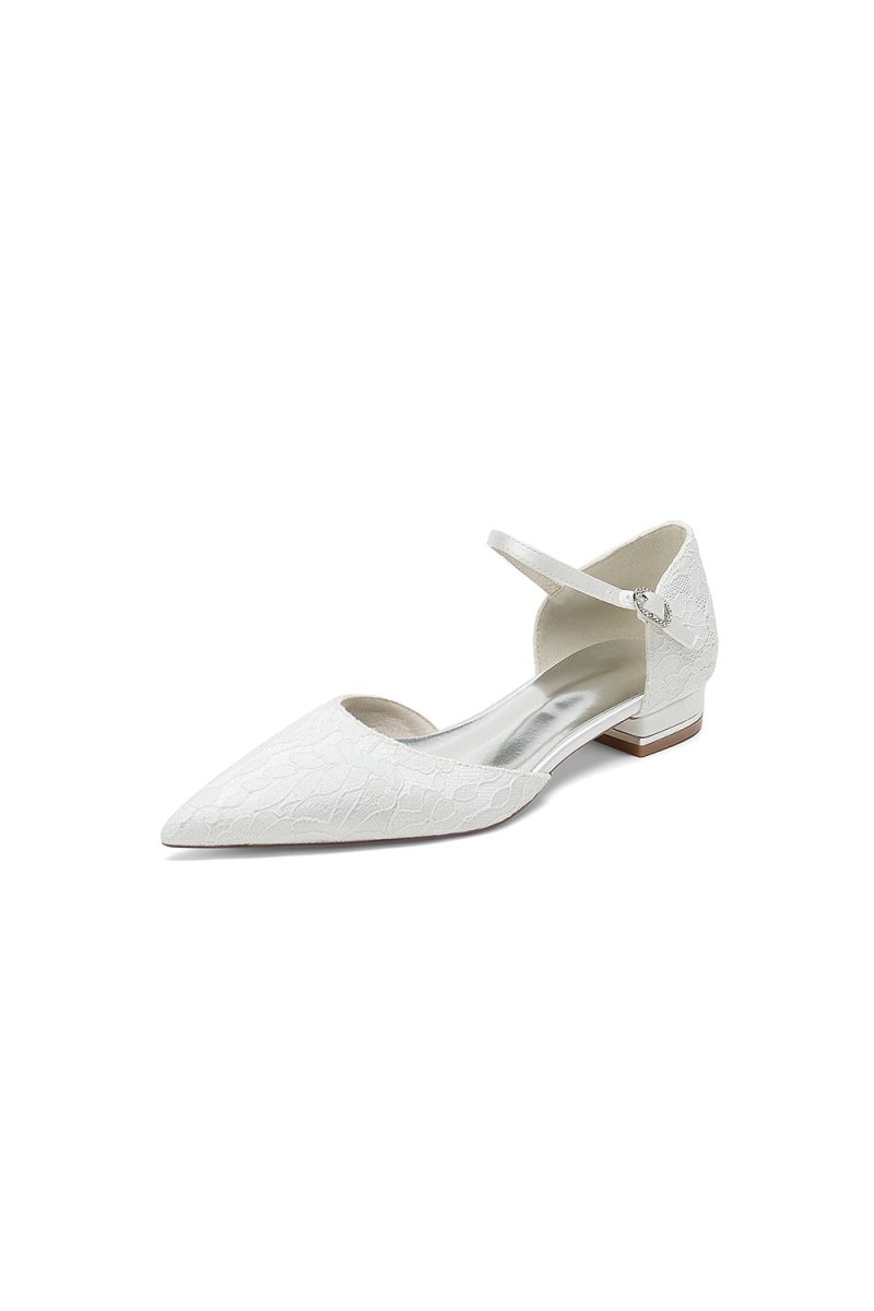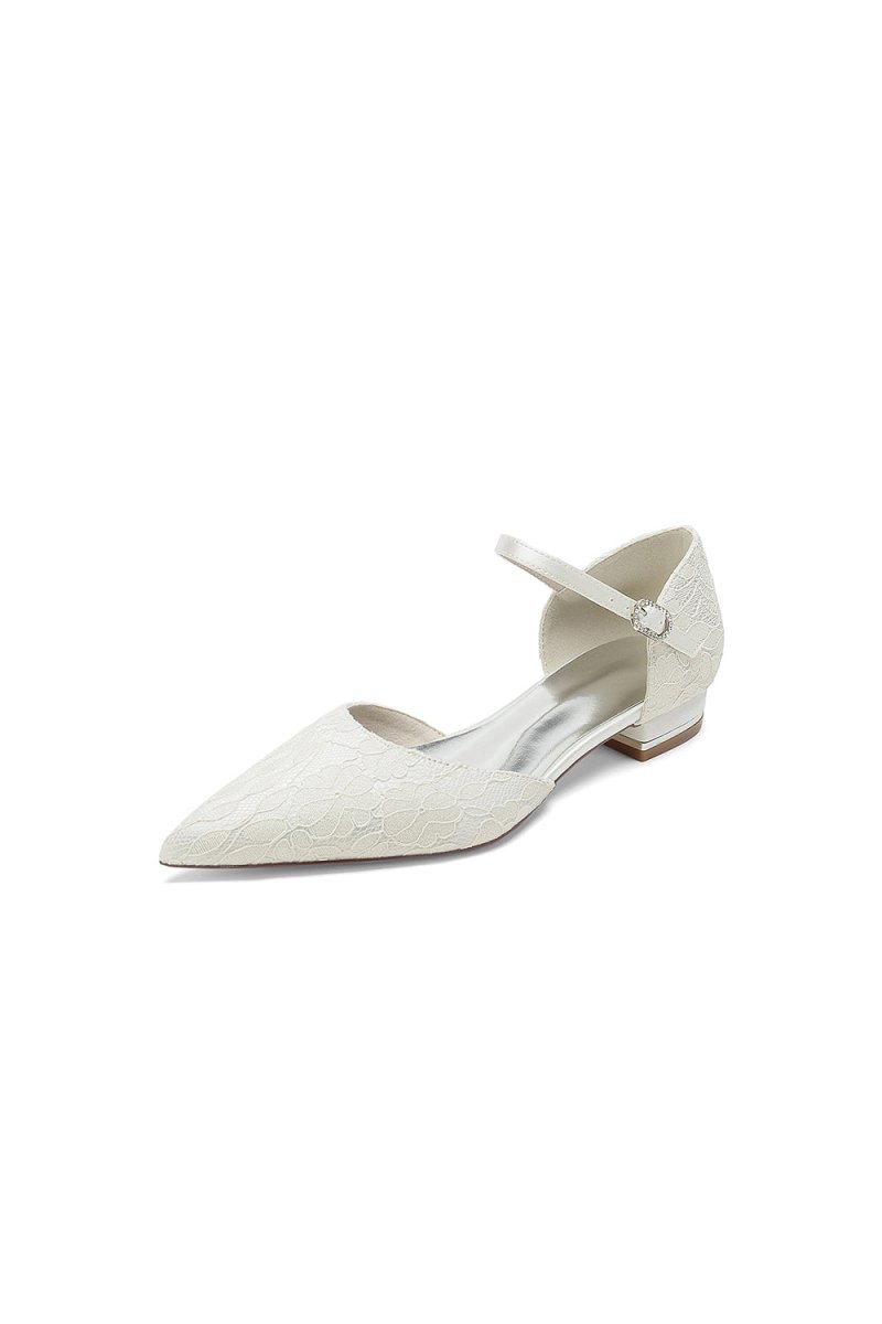 Elevate your fashion game with these exquisite white high heels, a perfect fusion of grace and sophistication. Crafted with meticulous attention to every detail, the shoes boast a pointed toe design that elongates the legs and adds a hint of contemporary flair to any outfit. The vamp of the shoe is adorned with delicate lace detailing, lending an aura of richness and complexity to the overall aesthetic. This intricate lace material exudes femininity and refinement, making it a standout in your shoe collection. The heel of the shoe is made from transparent material, revealing a brown wooden base inside for a touch of natural beauty and rustic charm. Apart from its unique design, the shoe also features a metal buckle on the side, allowing you to secure a lace or ribbon for a customized fit. This thoughtful design ensures a snug and comfortable feel, allowing you to walk with confidence and style. Whether you're dressing up for a special occasion or elevating your everyday look, these glamorous white high heels with intricate lace detailing are a