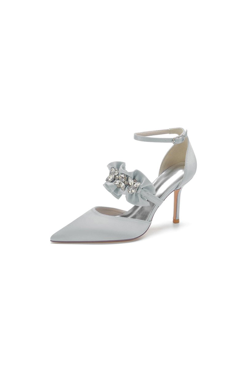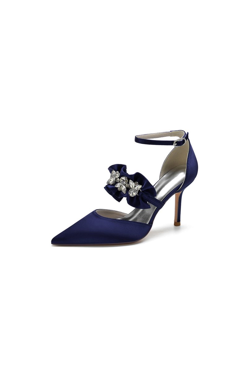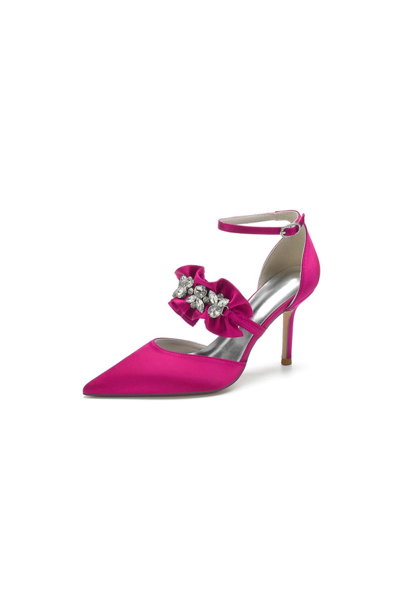 Elevate your look with these Cocktail Pointed Toe Crystal Buckle Strap High Heels, designed to make a statement at your wedding or prom. With a stunning rhinestone embellishment and a stiletto heel height of 8.5 cm, they add a touch of elegance and glamour. And the faux silk upper material and imitation pigskin sole ensure comfort. These heels will have you stepping into the spotlight with confidence, perfect for any glamorous occasion.