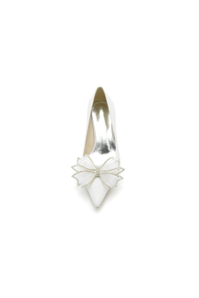 Elevate your bridal or special occasion look with crystal stiletto heel wedding shoes. Featuring a sleek pointed toe and adorned with a charming bow detail, these shoes offer a blend of elegance and sophistication. The stiletto heel adds height while maintaining comfort, making them perfect for weddings, proms, or any formal event. Crafted with high-quality materials, they provide a luxurious feel and a stunning finish for brides, bridesmaids, or anyone looking to add a little sparkle to their ensemble.