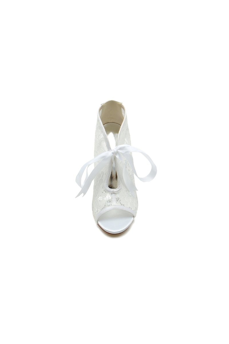Add a touch of elegance to any occasion with these white lace high heels, featuring a delicate lace bow embellishment. With their stiletto heel and open toe design, these heels are perfect for wedding shoes, bridesmaid shoes, or prom shoes. The slip-on style and rubber sole provide comfort, making them ideal for evening shoes, party shoes, and special occasions.