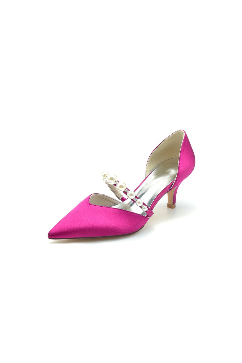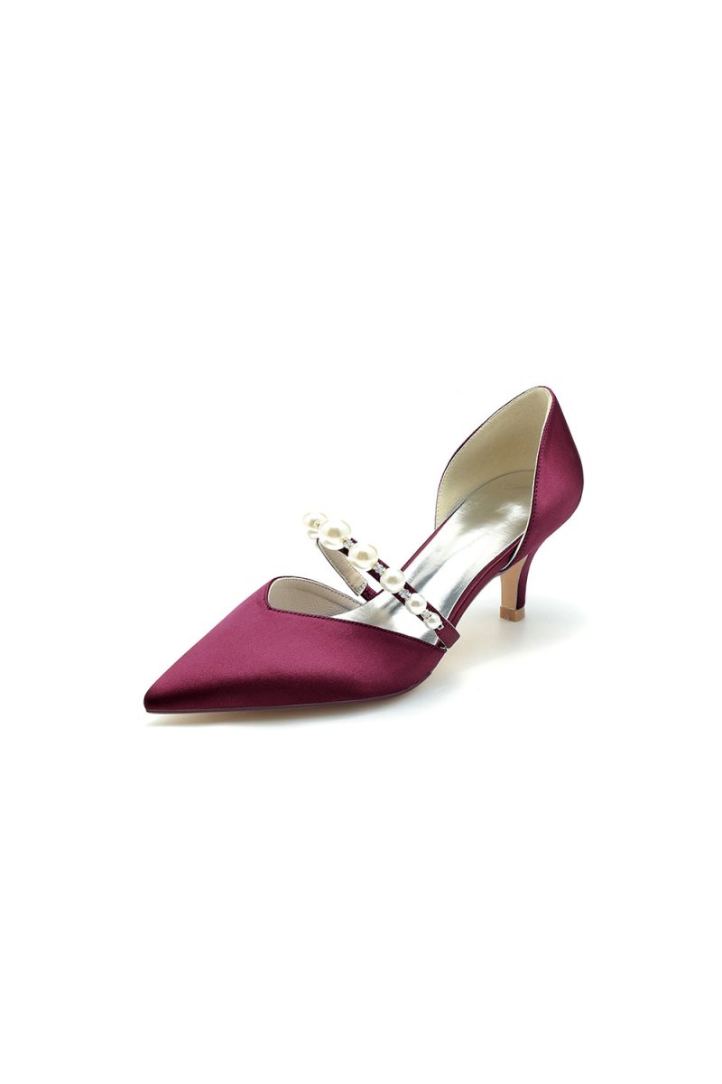Elevate your style with Elegant Satin Pointed Toe Heels. Featuring a luxurious pearl strap and a comfortable stiletto heel, these slip-on shoes are perfect for your wedding, prom, or any special party. The satin finish and pointed toe add a refined touch, making them an ideal choice for any formal occasion. Upgrade your shoe collection with these timeless beauties.