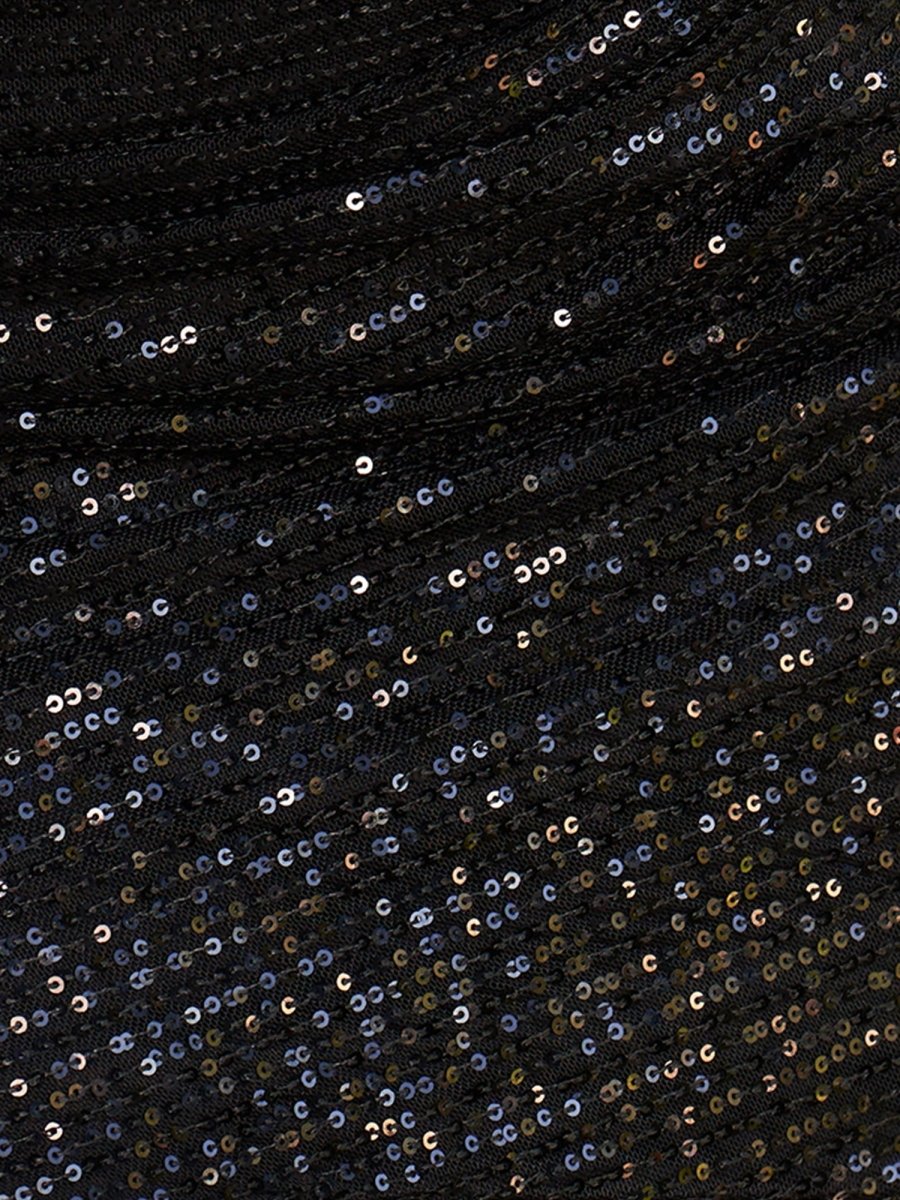 Introducing 'Greta', the epitome of classic glamour with a twist. Designed in a figure-flaunting sheath style, this dress promises to accentuate your curves in all the right places. Radiate unmatched elegance with the shimmering sequin fabric that catches light from every angle, ensuring you stand out effortlessly. The spaghetti-strap V-neckline delicately frames your collarbone and neck, adding a touch of sultriness to this elegant ensemble. While the dress gracefully skims your figure, the criss-cross back design brings an element of surprise, showcasing a flirty yet sophisticated look.