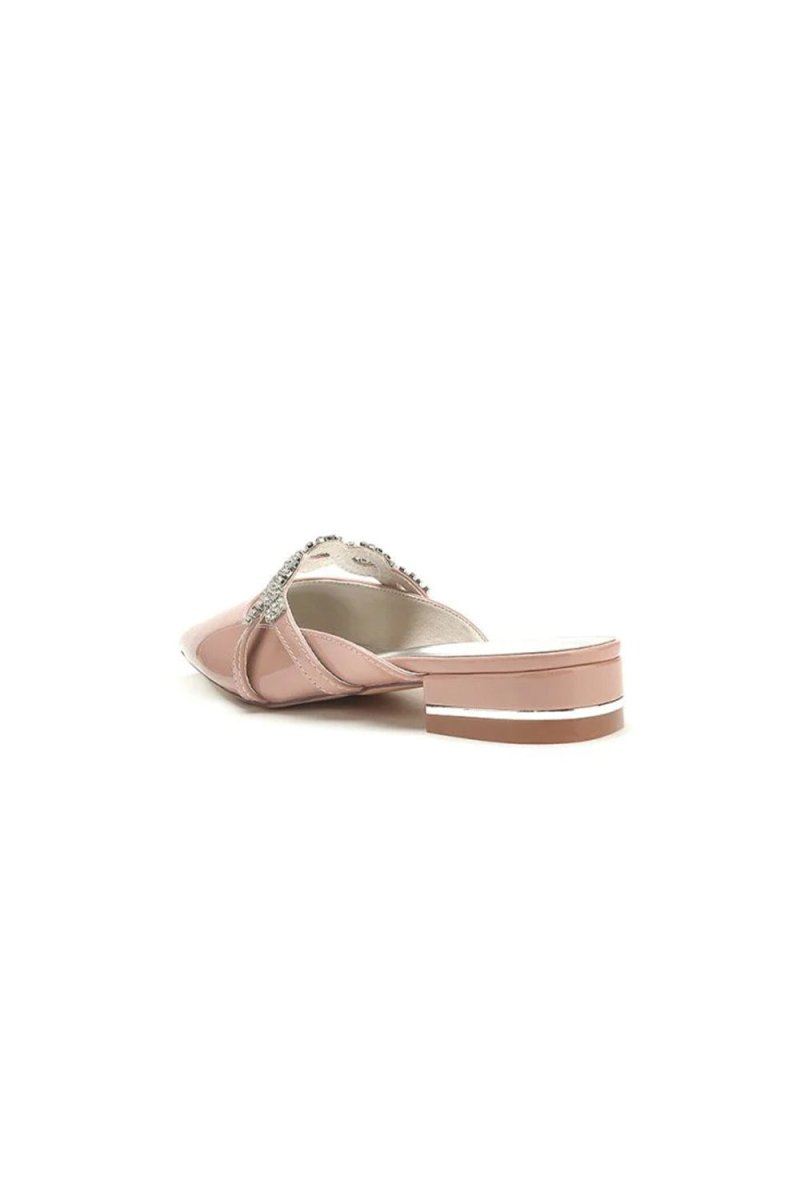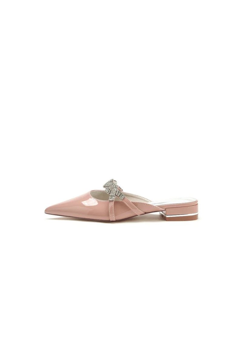 Experience stable and comfortable wearing with these elegant high heels in a soft pink hue. The lower heel is shaped like a slim cylinder while the standout feature is the silver metal band adorned with sparkling rhinestones. This band extends from the vamp's center to above the heel, forming an elegant arc that enhances the overall aesthetic appeal. The glossy material and silver embellishments create a harmonious and timeless look, while the pink hue adds a touch of femininity and delicacy. These shoes are a true work of art that combines sophistication, femininity, and modernity, making them a must-have addition to any fashion-forward wardrobe. Whether you're attending a formal event or adding glamour to your everyday look, these shoes are sure to make a statement.
