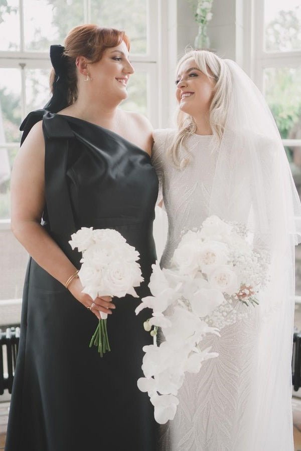 Elegance and charm meet in the Light Blue One Shoulder Satin Sheath Long Bridesmaid Dress. This floor-length dress features a flattering mermaid silhouette that gracefully hugs the body before gently flaring out, perfect for weddings or as part of a wedding party. The luxurious satin fabric offers a soft, lustrous sheen that catches the light beautifully, while the one-shoulder neckline adds a touch of modern sophistication. With its sleeveless design and zipper back, this dress promises a comfortable, adjustable fit while maintaining a chic, structured look. This dress combines timeless beauty with contemporary flair, ensuring all eyes are on you as you celebrate in style, ideal for bridesmaids or special occasions.