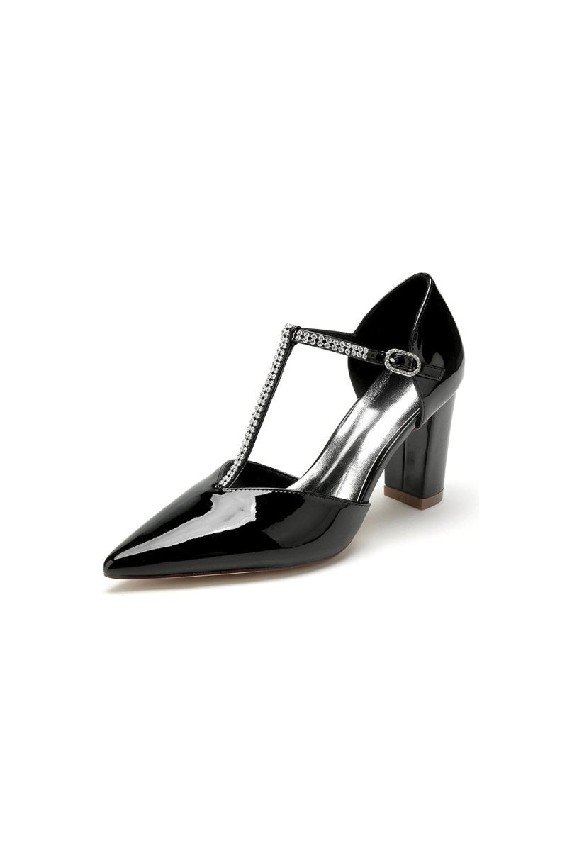 Indulge in pure elegance and sophistication with these gorgeous light pink high heels. Delicately crafted from glossy patent leather, each step catches the light gracefully, radiating a luxurious aura. Modern touches of metallic accents elevate the classic high heel design, while a striking metallic ring adorned with sparkling diamonds adorns the ankle, making for a captivating visual display. The slender and pointed heel elongates the legs, while the thick sole ensures comfort and stability, perfect for extended wear. Be the epitome of style at any formal event or special occasion with these must-have light pink high heels with metallic accents. Versatile and chic, they effortlessly elevate any outfit, from flowing dresses to tailored trousers.
