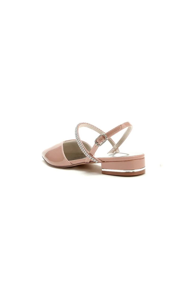 This photograph showcases a pair of elegant pink high heels that exude sophistication and modern style. The shoes feature a sleek and streamlined design, with a smooth surface that reflects light brilliantly. The pointed-toe design adds to their sleek and chic appearance, making them perfect for any occasion, from formal events to daily wear. The shoe's lace-up detail in silver contrasts sharply with the pink body, adding a touch of luxury with its transparent crystal bead adornments. The meticulous attention to detail enhances the overall aesthetic appeal of these shoes. The relatively low heel provides a comfortable and stable wearing experience, making them versatile for everyday activities and formal events. The predominantly pink color palette is offset by silver accents, adding visual intrigue and contrast. The pure white background serves to highlight the shoes, allowing the viewer to fully appreciate their elegance and beauty. These pink high heels with silver trim are a true masterpiece, seamlessly blending sophistication with modernity.