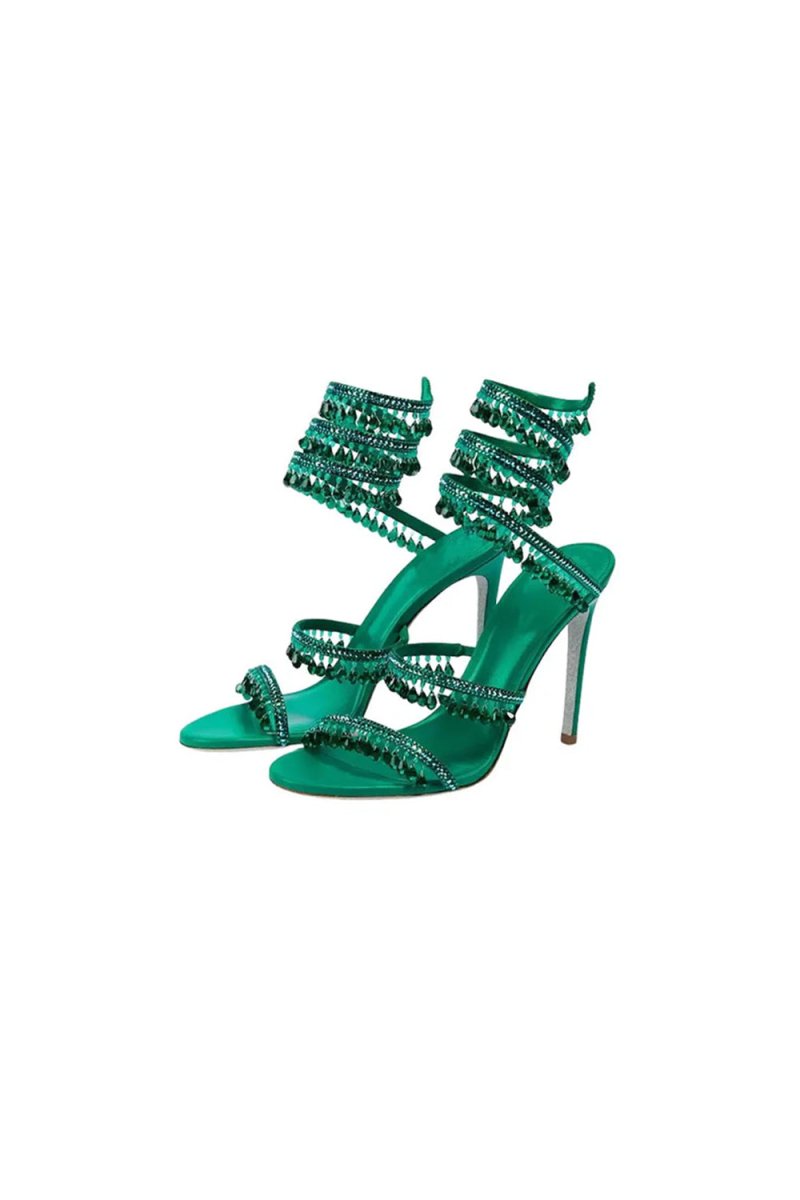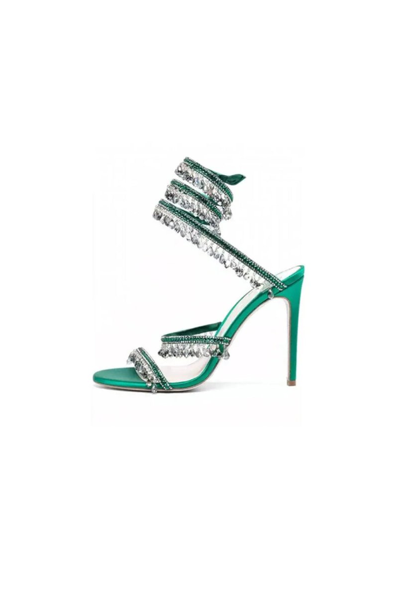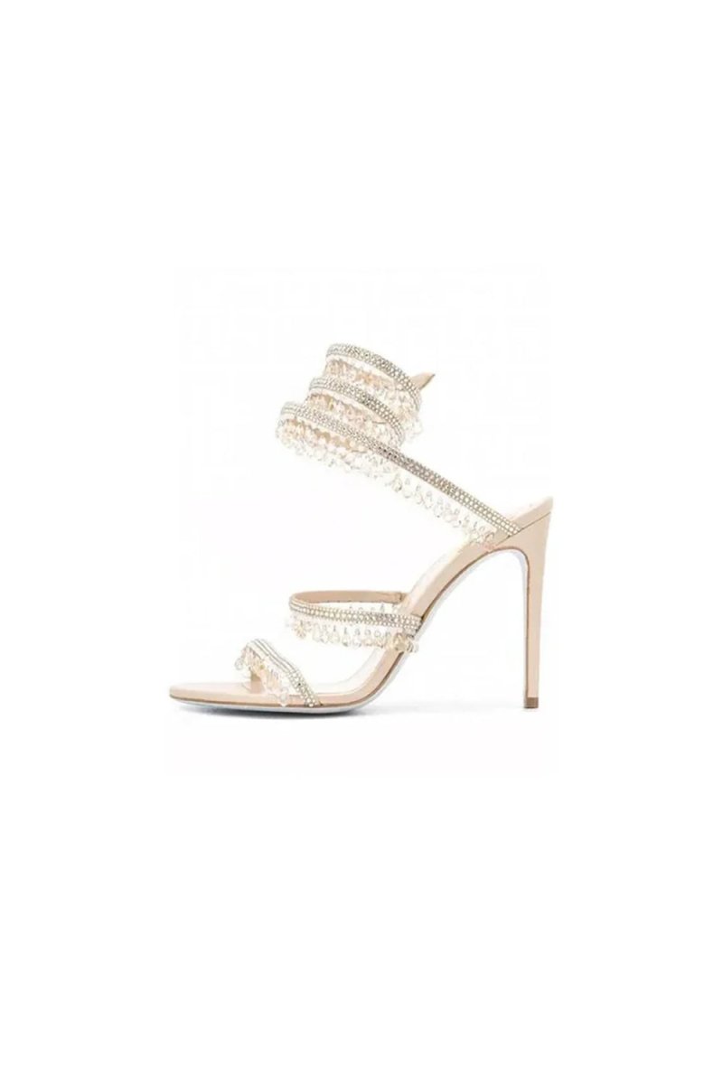 These luxurious stiletto heels feature multiple straps embellished with glittering beads and crystals that artfully flow down the foot, delivering a striking, radiant allure. Designed with a slender high heel, they lengthen the legs and infuse refinement into any outfit. Ideal for upscale occasions like galas and weddings, these sandals make a bold fashion statement. The open-toe style showcases your pedicure elegantly, while the secure ankle wrap provides both elegance and comfort. Enhance your ensemble with these beautifully detailed heels that capture timeless sophistication and glamour.