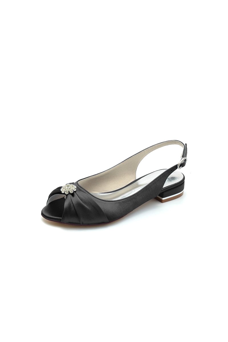 Enhance your special occasion look with Open Toe Flats with Bow Cocktail. These rhinestone embellished flats feature a faux silk upper and a low heel for added comfort. The rubber sole and faux leather lining make them perfect for weddings and proms. Make a statement with these stylish and elegant flats.