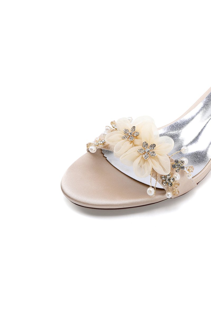 Elevate your party or prom look with these Open Toe Hollow Out Chunky Heels with Flowers, perfect for weddings, homecoming, cocktail nights, or any glamorous event. Featuring a dazzling rhinestone embellishment and a chic 4.5 cm chunky heel, these heels bring just the right touch of elegance and sparkle. The faux silk upper and imitation pigskin sole offer both style and comfort, so you can dance the night away with ease. Whether you're attending a wedding, dressing up for hoco, or heading to a cocktail party, these heels will make sure all eyes are on you.