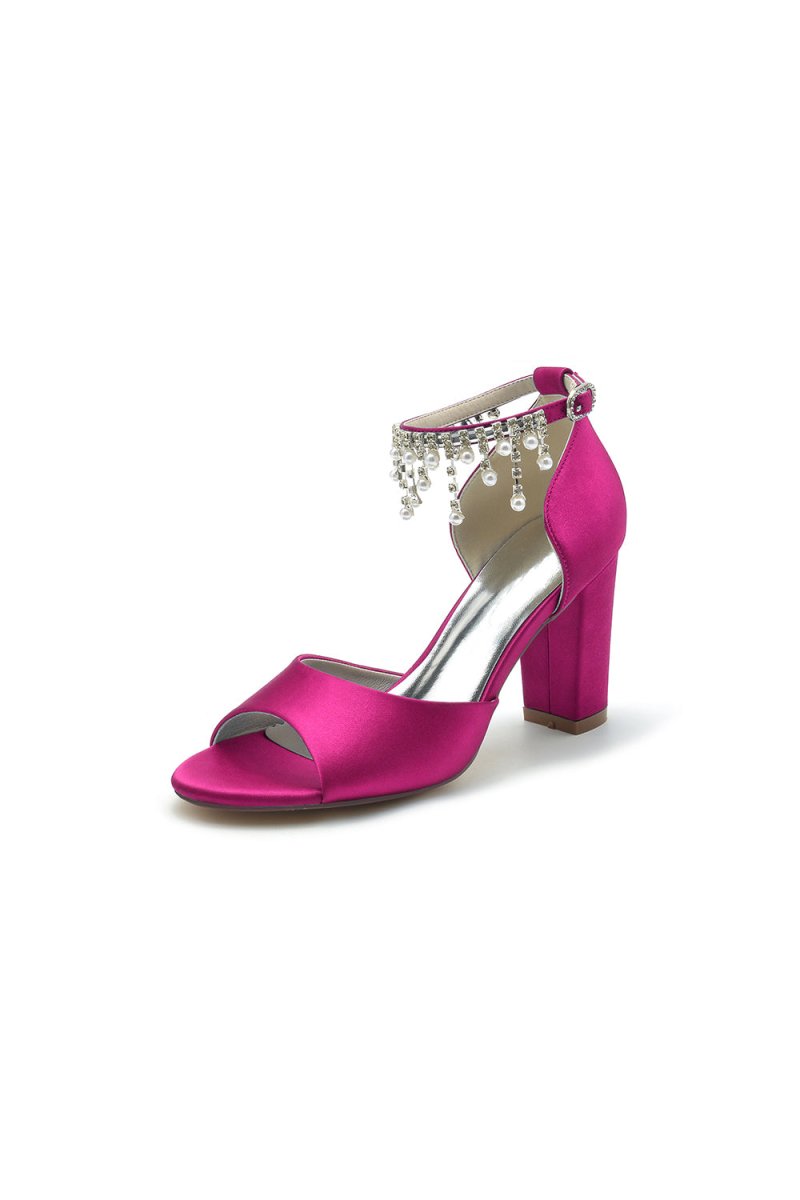 These Open Toe Pearl Tassel Satin Chunky Heels feature a sophisticated and stylish design, perfect for any formal or special occasion. The open toe and chunky heel provide comfort while the pearl tassel adds a touch of elegance. Crafted from high-quality satin, these heels will add a glamorous touch to any outfit. From wedding day to prom night, these versatile shoes are ideal as bridal shoes or evening shoes.