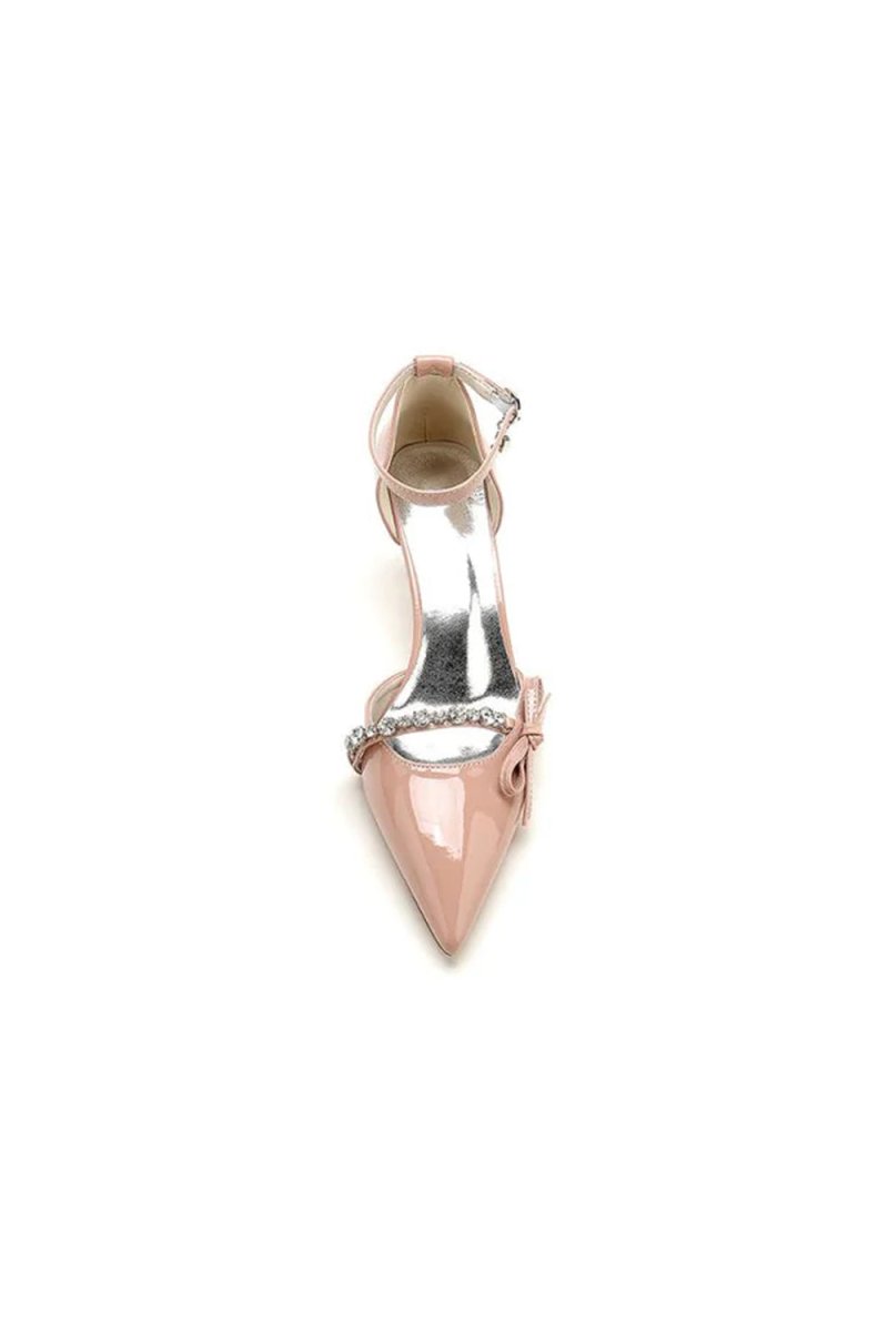 Step into elegance with the Patent Leather Mirror Finish with Rhinestone Pointed Toe Stiletto Heel. The glossy patent leather finish creates a chic, mirror-like shine, while the intricate rhinestone embellishments on the pointed toe add a touch of sparkle, perfect for adding a touch of glamour as bridesmaid flats, prom footwear, evening heels, or for any formal event. Designed with a sleek stiletto heel standing at 6 cm, these shoes provide both height and comfort, making them ideal for all-day wear.