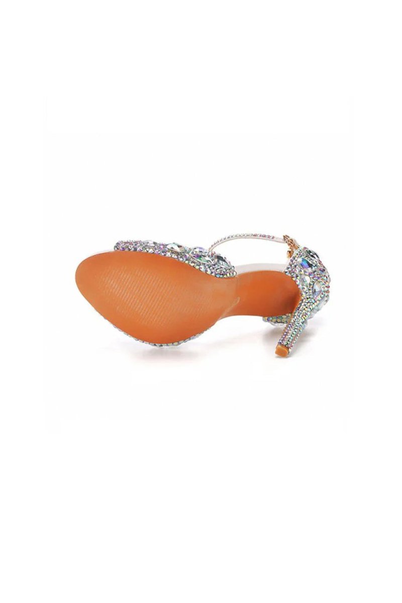 Add a bold touch of glamour to your special occasion with the Peep Toe Big Colored Rhinestones Ankle Strap Stiletto Heels. Designed for elegance and style, these heels feature eye-catching rhinestone embellishments that will make you shine at any event, whether it's a wedding, prom, or another glamorous gathering.