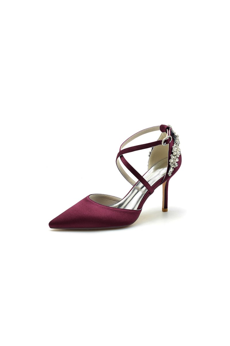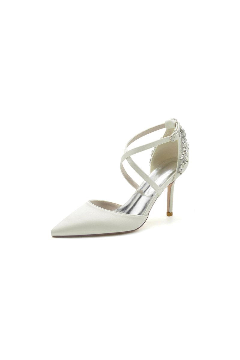 Enhance your formal look with Pointed Toe Cross Strap With Rhinestones Stiletto Heels. Featuring a stunning rhinestone embellishment and a sleek stiletto heel, these heels will add a touch of elegance to any outfit. The cross strap closure ensures a secure fit, while the pointed toe and rubber lining provide comfort for any occasion. Elevate your style with these heels, perfect for proms and weddings.
