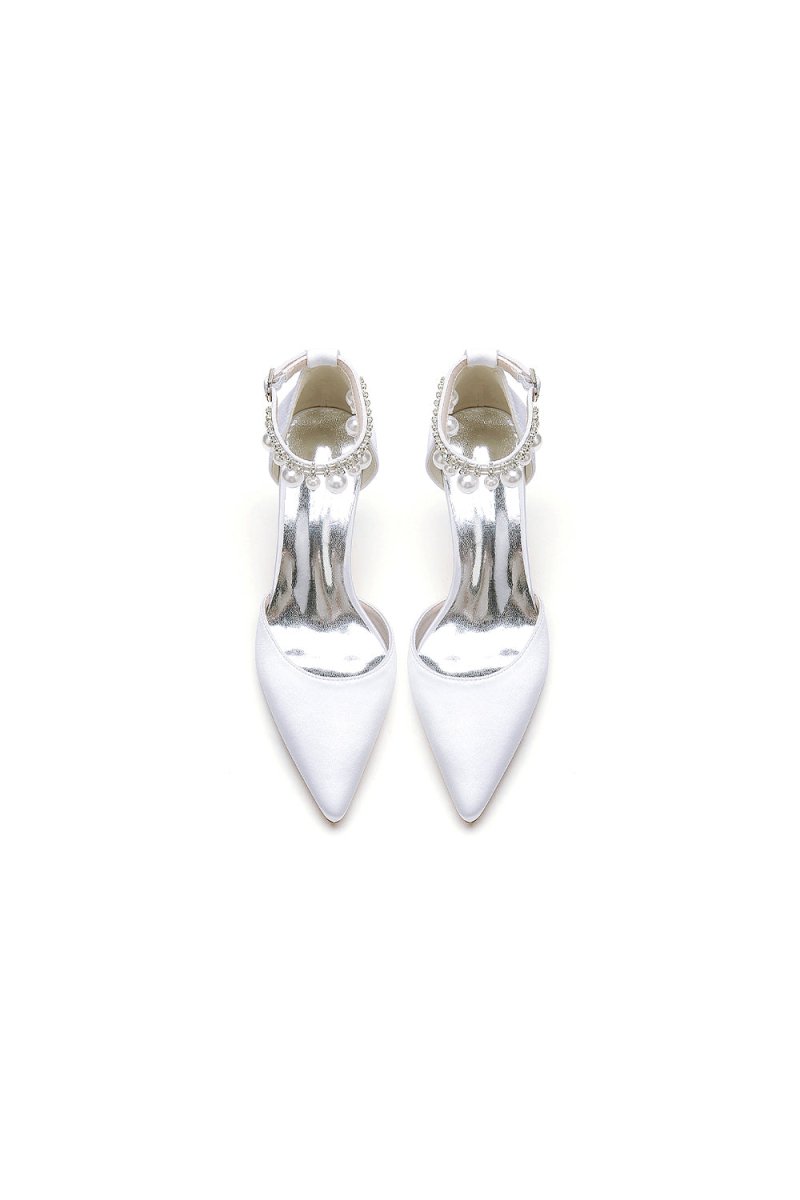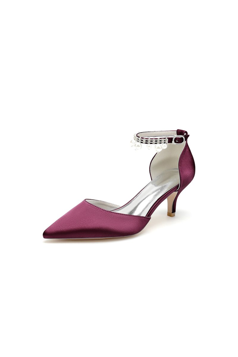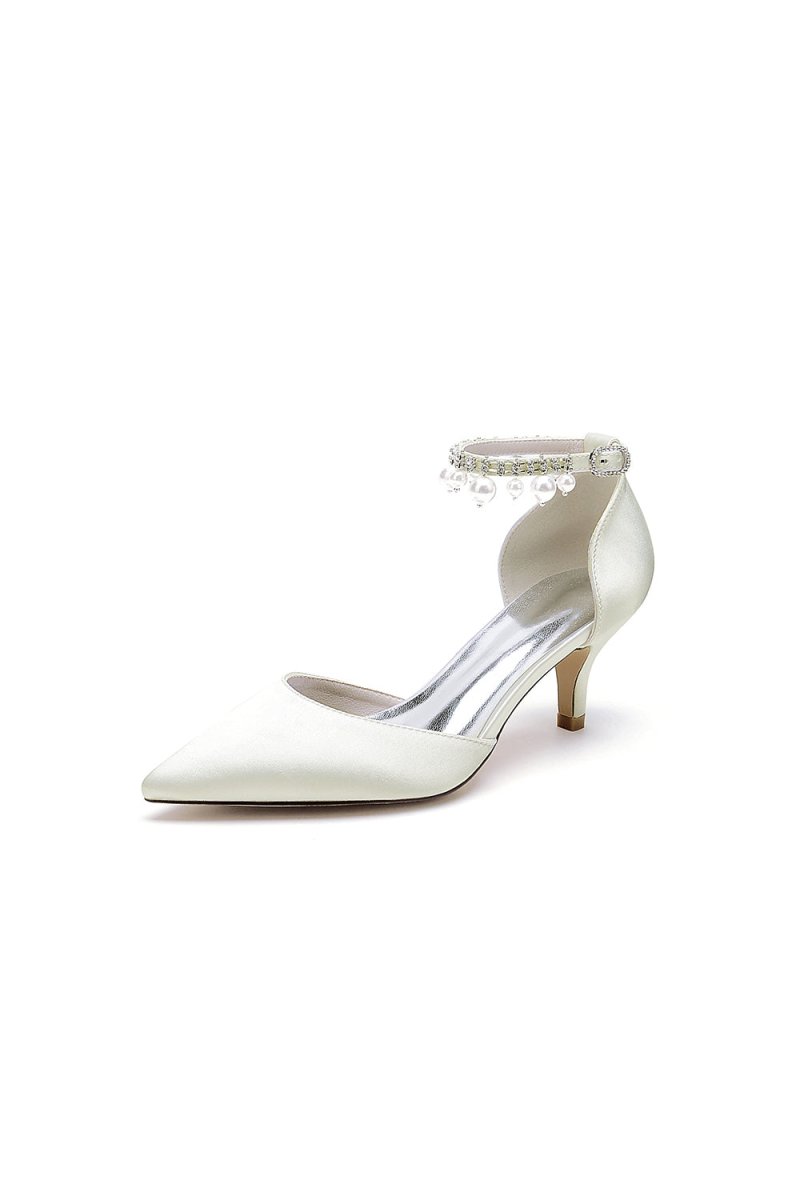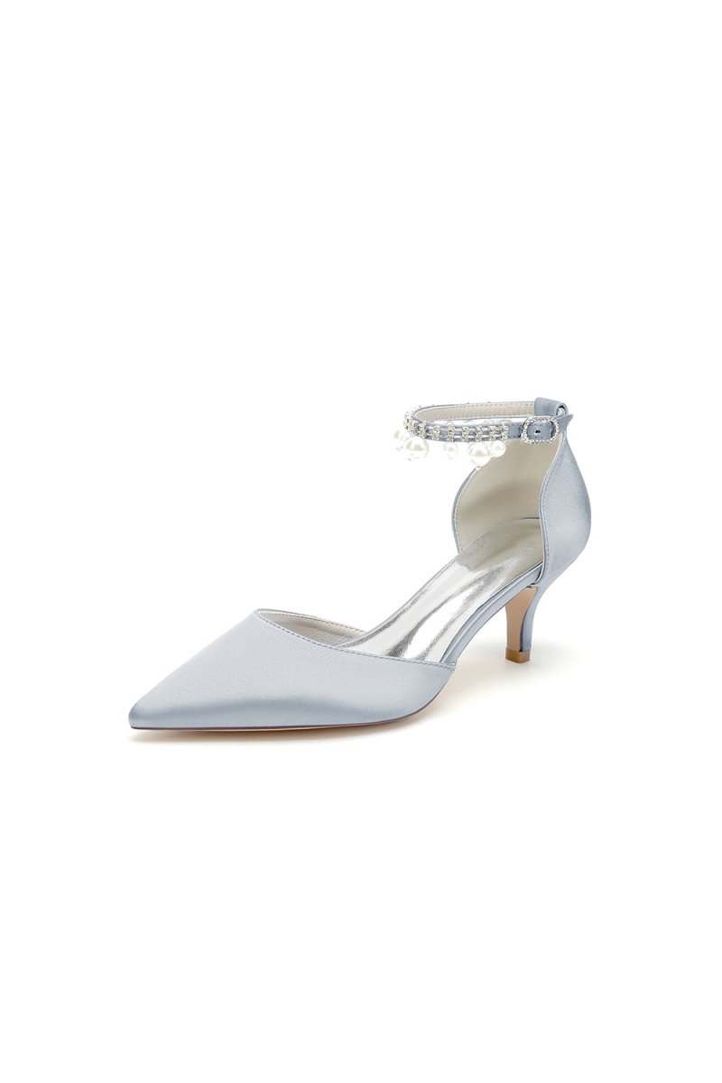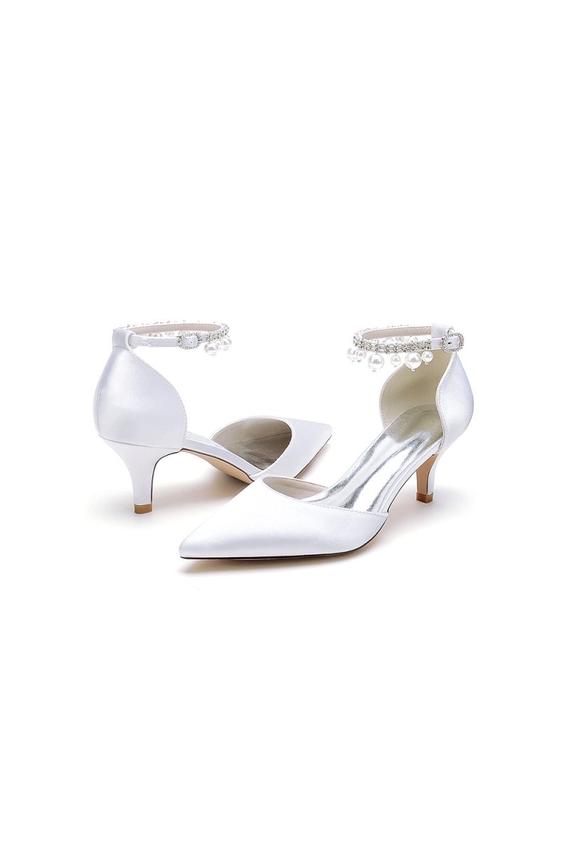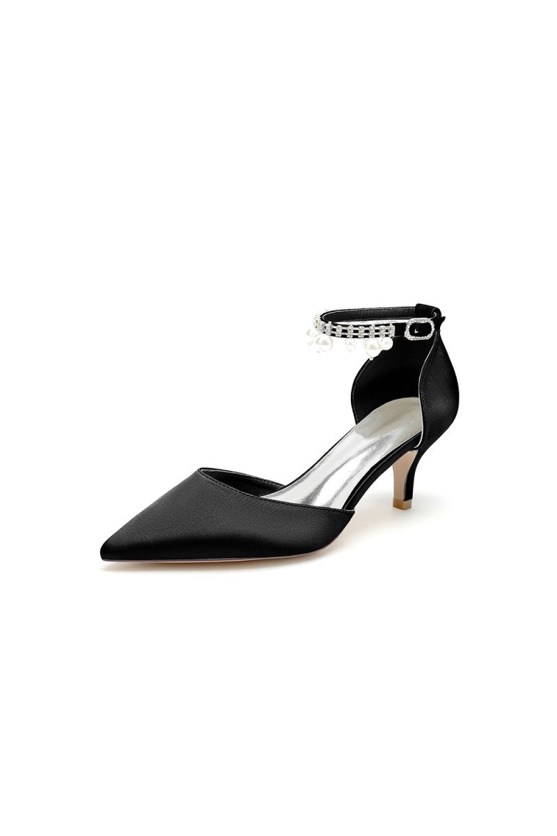 Elevate your look with chic pointed toe kitten heels adorned with elegant pearls. Featuring a one-strap buckle and a comfortable stiletto heel, these shoes are perfect for weddings, proms, and other special occasions. The timeless design ensures you’ll shine with comfort and style all day or night, Ideal for both brides and bridesmaids.