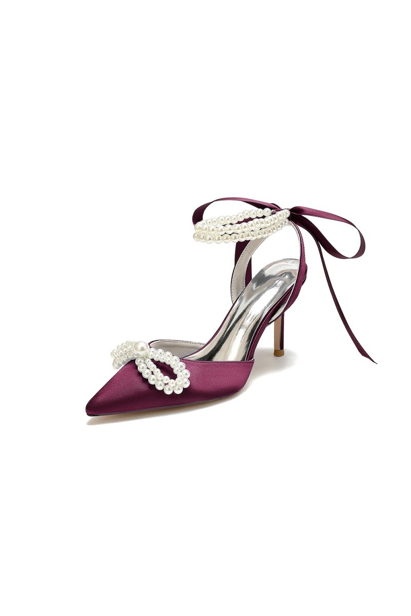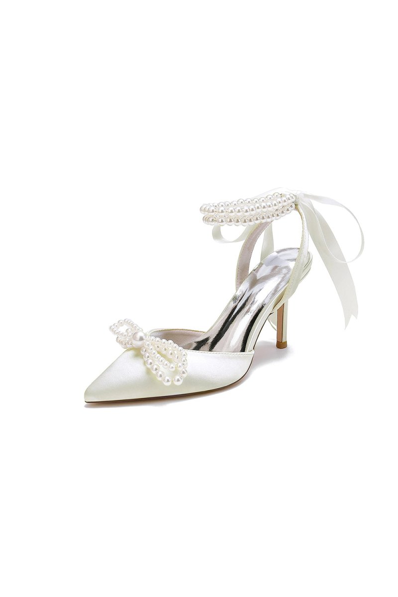 Get ready to strut in style with Pointed Toe Pearl Strap heels! Adorned with a charming Ribbon Bow and elegant Pearls, these Stiletto heels will elevate any outfit. The Pearl Strap closure and Imitation Pigskin sole provide a comfortable and secure fit, perfect for a special Wedding occasion.