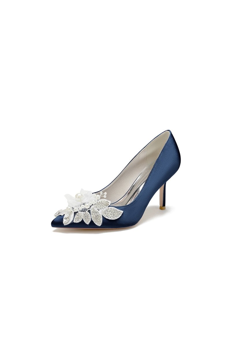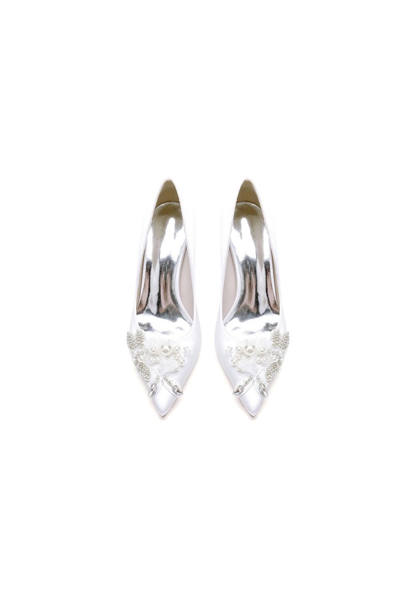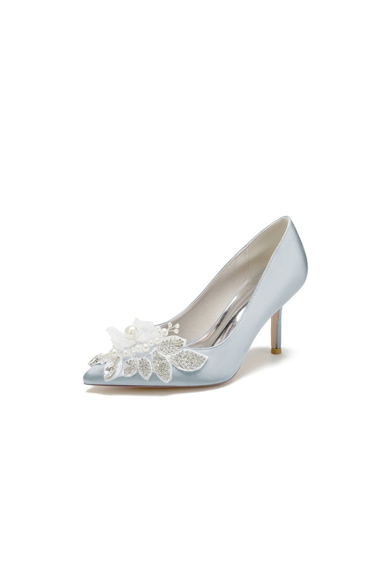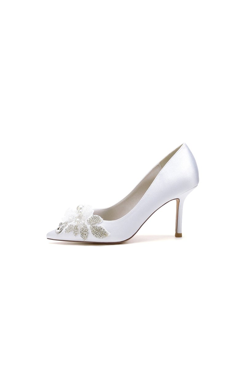 Elevate your wedding look with Pointed Toe Satin Bridal Heels. Featuring a sleek 8.5 cm stiletto heel and crystal and pearl embellishments, these heels exude elegance and luxury. The one-strap buckle closure keeps your foot secure while the faux silk upper and rubber lining provide comfort for hours. Perfect for brides and bridesmaids alike.