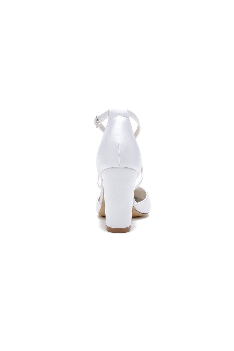 Elevate your bridal look with elegant Pointed Toe White Wedding Shoes with Flower. Designed with a sophisticated pointed toe and adorned with a delicate flower embellishment, these shoes are perfect for your wedding, prom, or bridesmaids' shoes. The chunky heels offer comfort and support, while the rubber sole ensures stability. These wedding shoes combine beauty and comfort, perfect for your special occasion.