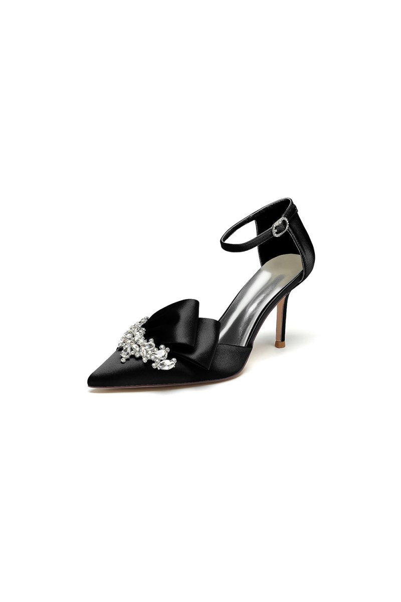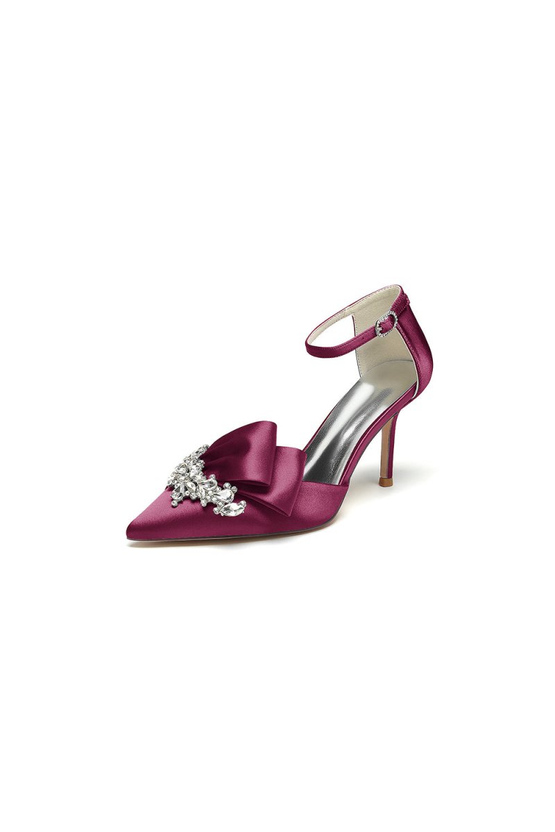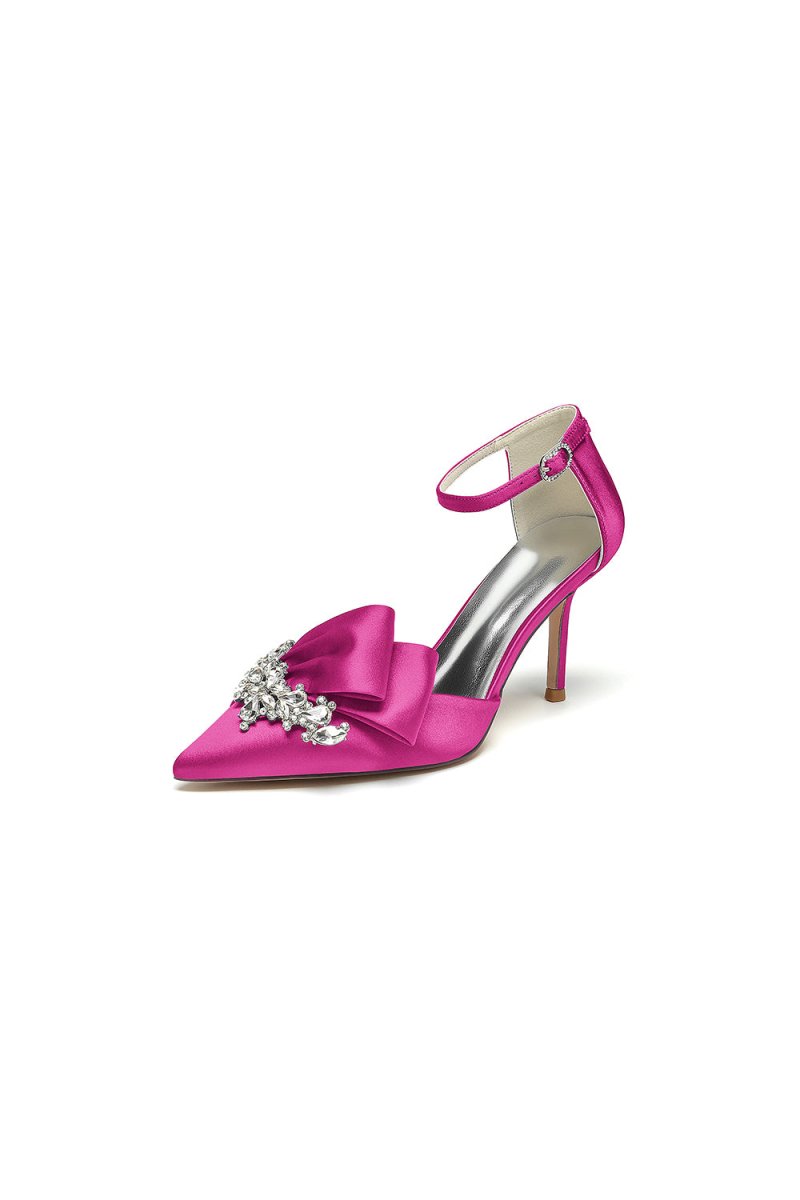 Add a touch of glamour to your wedding look with stunning Pointed Toe Wedding Shoes. Adorned with a delicate ribbon bow and shimmering rhinestones, it is the perfect choice for any wedding occasion. The stiletto heels enhance your posture, while the pointed toe creates a sleek, feminine look. The buckle closure ensures a secure fit, and the imitation pigskin sole and rubber lining provide lasting comfort. Trust these expertly crafted shoes to elevate your wedding ensemble.