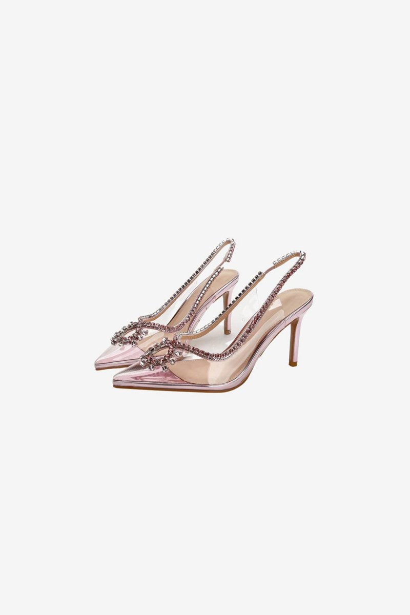 Add sparkle to your step with these Rhinestone Pink Pointed Toe Stiletto Sandals. Featuring dazzling rhinestones and a sleek 9 cm stiletto heel, these party shoes are perfect for prom or any celebration. The pointed toe and slip-on design ensure a chic, effortless look, while the rubber lining offers comfort all night long.