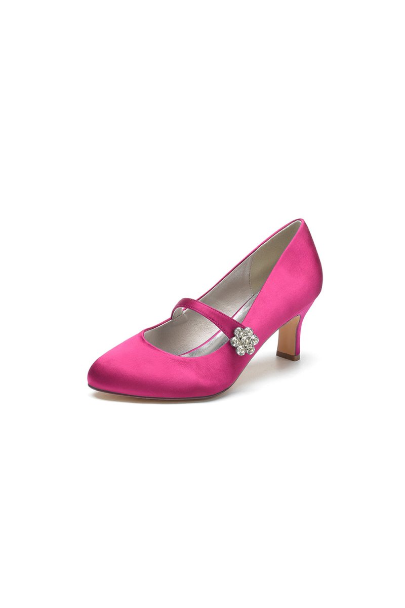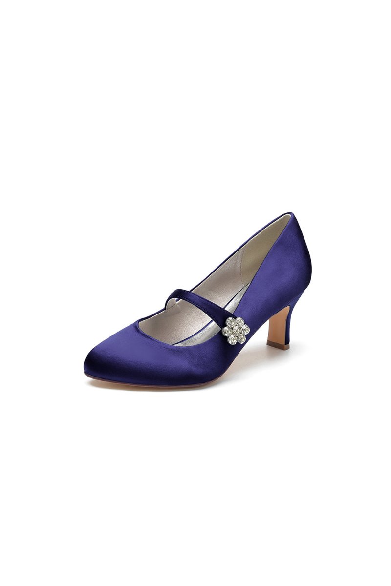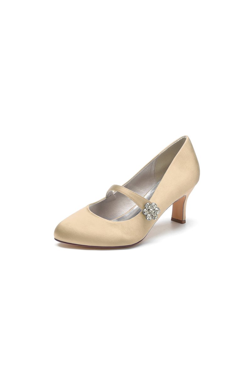 Elevate your look with these Round Toe Crystal Buckle Strap Chunky Heels, designed to make a statement at your wedding or prom. With a stunning rhinestone embellishment and a chunky heel height of 6.5 cm, they add a touch of elegance and glamour. And the faux silk upper material and imitation pigskin sole ensure comfort. These heels will have you stepping into the spotlight with confidence, perfect for any glamorous occasion.