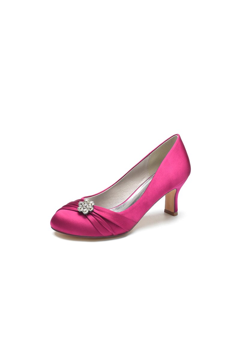 Elevate your look with these Round Toe Crystal Flower Chunky Heels, designed to make a statement at your wedding or prom. With a stunning rhinestone embellishment and a chunky heel height of 6.5 cm, they add a touch of elegance and glamour. And the faux silk upper material and imitation pigskin sole ensure comfort. These heels will have you stepping into the spotlight with confidence, perfect for any glamorous occasion.