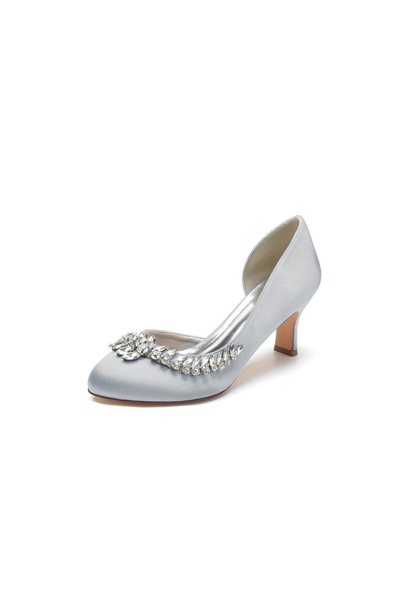 Elevate your look with these Round Toe Crystal Leaf Chunky Heels, designed to make a statement at your wedding or prom. With a stunning rhinestone embellishment and a chunky heel height of 6.5 cm, they add a touch of elegance and glamour. And the faux silk upper material and imitation pigskin sole ensure comfort. These heels will have you stepping into the spotlight with confidence, perfect for any glamorous occasion.