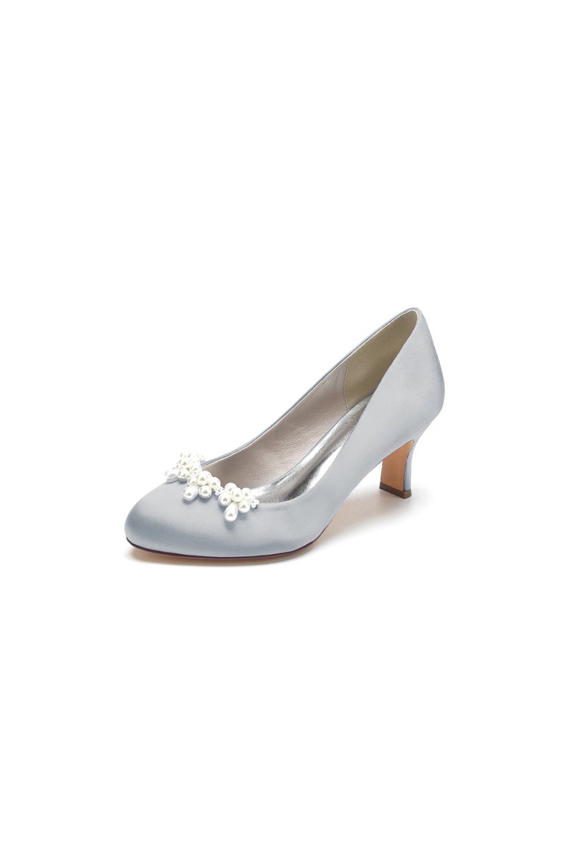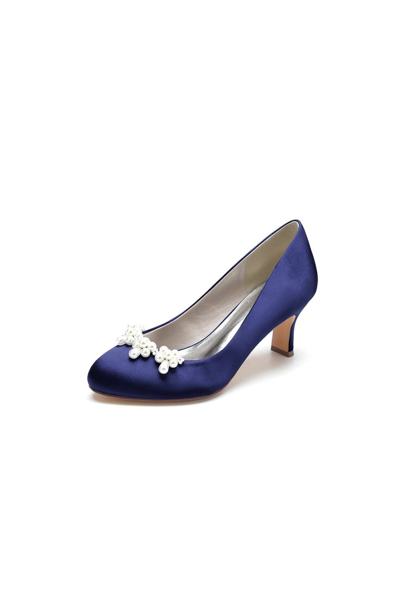 Elevate your look with these Round Toe Pearl Chunky Heels, designed to make a statement at your wedding or prom. With a stunning pearl embellishment and a chunky heel height of 6.5 cm, they add a touch of elegance and glamour. And the faux silk upper material and imitation pigskin sole ensure comfort. These heels will have you stepping into the spotlight with confidence, perfect for any glamorous occasion.