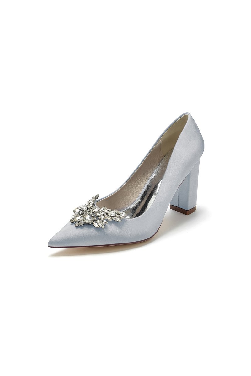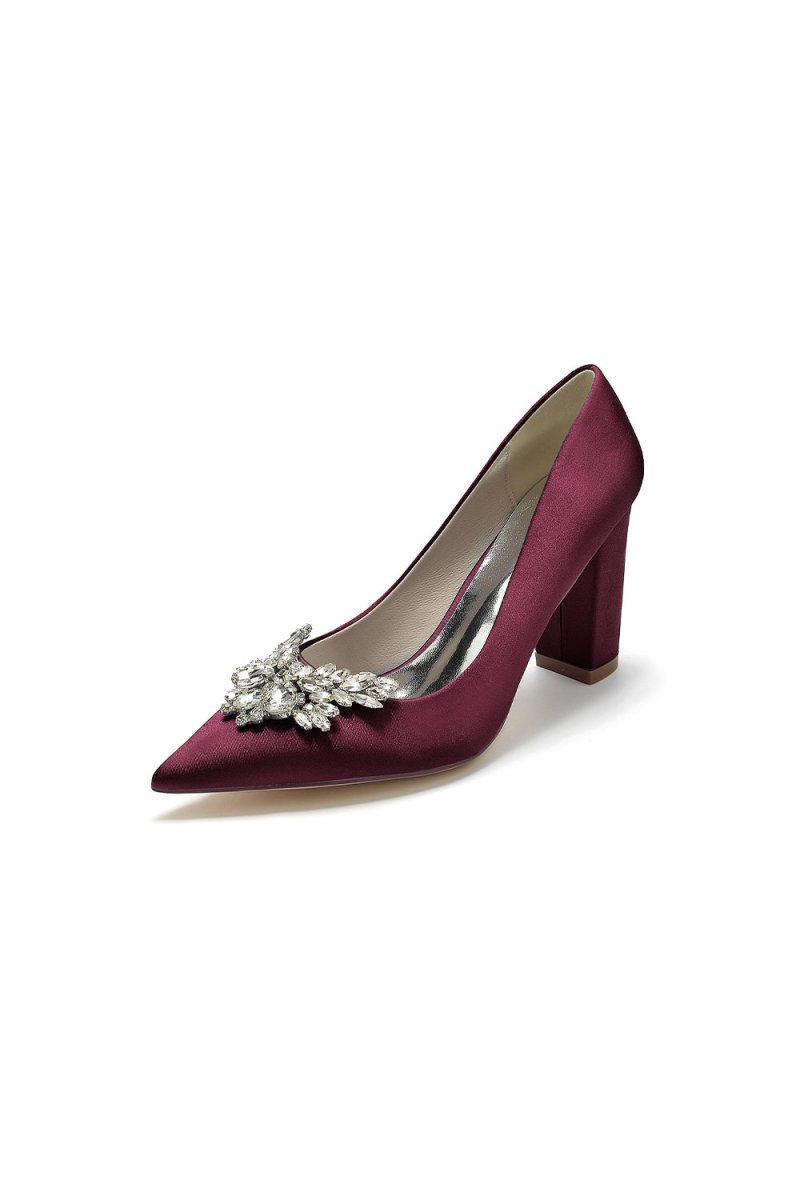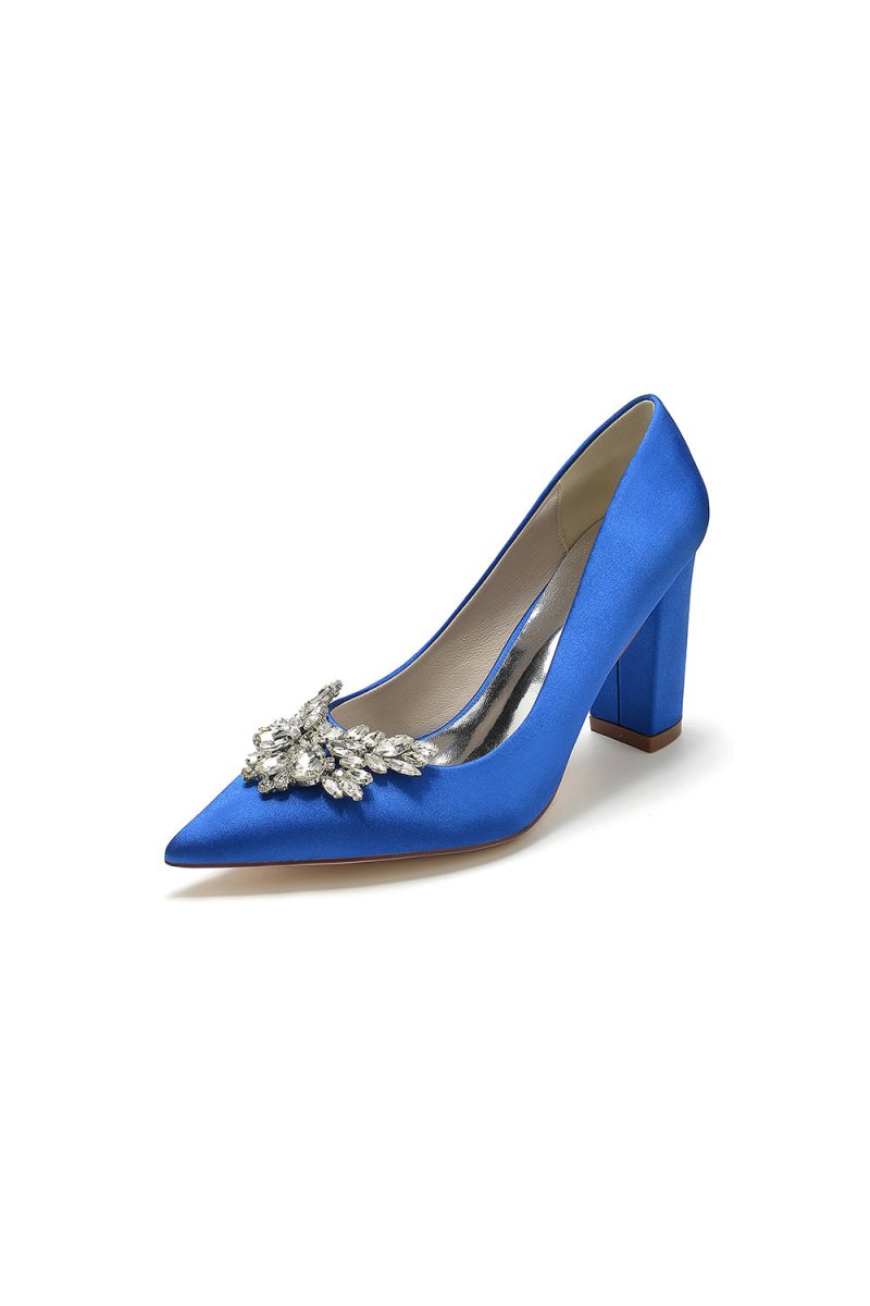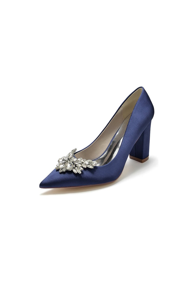 Step up your style with these Satin Pointed Toe Slip-on Chunky Heels! Made with a silky satin material and adorned with dazzling rhinestones, these luxurious heels are perfect for any formal occasion. The pointed toe design adds a touch of sophistication, while the chunky heel provides stability and comfort. From wedding shoes to prom shoes, these elegant heels are perfect for every special occasion.