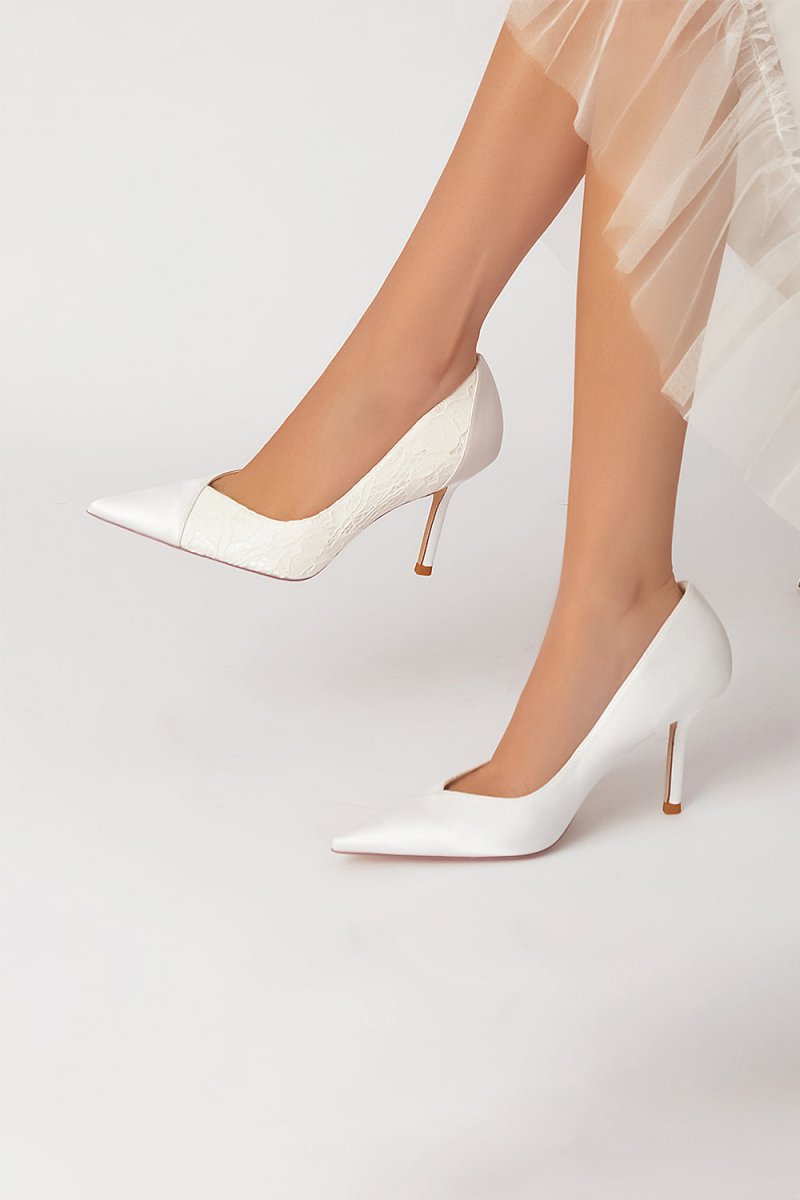 Experience elegance and comfort with Stiletto Pointy Heels Lace Wedding Shoes. Adorned with delicate lace and featuring a pointed toe and 8.5 cm stiletto heel, these shoes are perfect for weddings and bridesmaids. The one-strap buckle closure and imitation pigskin sole provide a secure and comfortable fit, ensuring you can dance the night away in style.