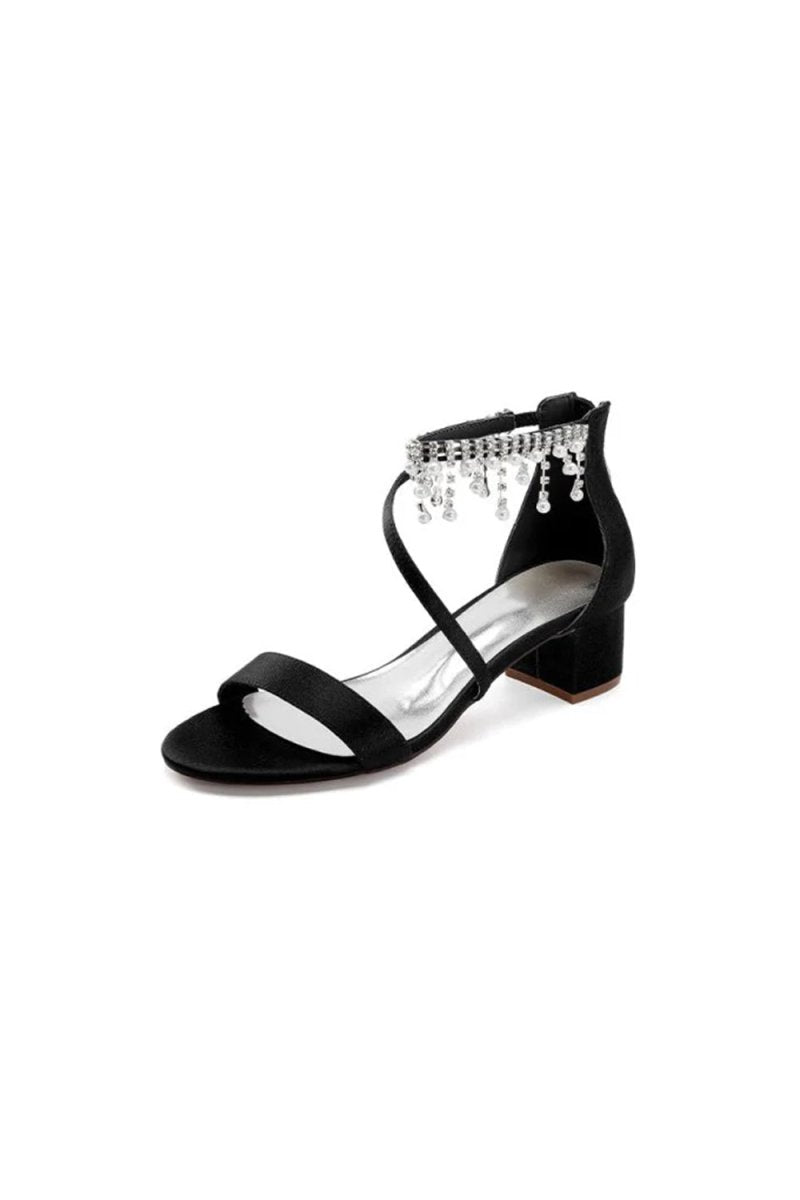 Enhance your ensemble with these elegant strappy heeled sandals, beautifully detailed with delicate pearls and crystals. The slim straps elegantly encircle the foot, offering both support and refined style, while the mid-height block heel delivers comfort throughout the day without sacrificing grace. Finished in smooth satin, these sandals radiate sophistication, ideal for weddings, celebrations, or any memorable event. The intricate bead embellishments add a luxurious sparkle, ensuring you captivate attention with every step.