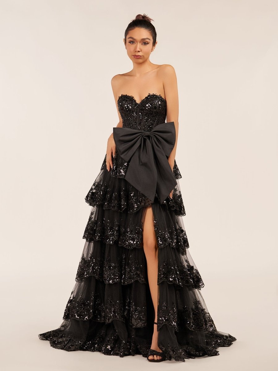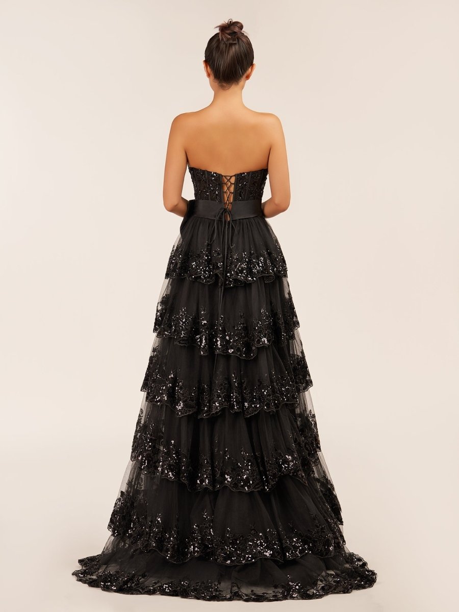 Step into elegance with our Sweetheart Lace Appliques Ruffle Long Formal Gown. This A-line dress offers a universally flattering silhouette that flows gracefully to the floor and it is crafted from delicate lace fabric. An ideal choice for both evening dresses and formal dresses, with its sweetheart neckline highlights the neckline with classic charm, while exquisite lace appliques add texture and sophistication. It is available in a selection of captivating colors — light blue, pink, red, and black that allows you to find the perfect hue for any formal occasion. The ruffled layers and bow-knot provide subtle volume and a touch of whimsy, while the lace-up back ensures an adjustable, secure fit. This dress is the ultimate choice for those who want to make a lasting impression.