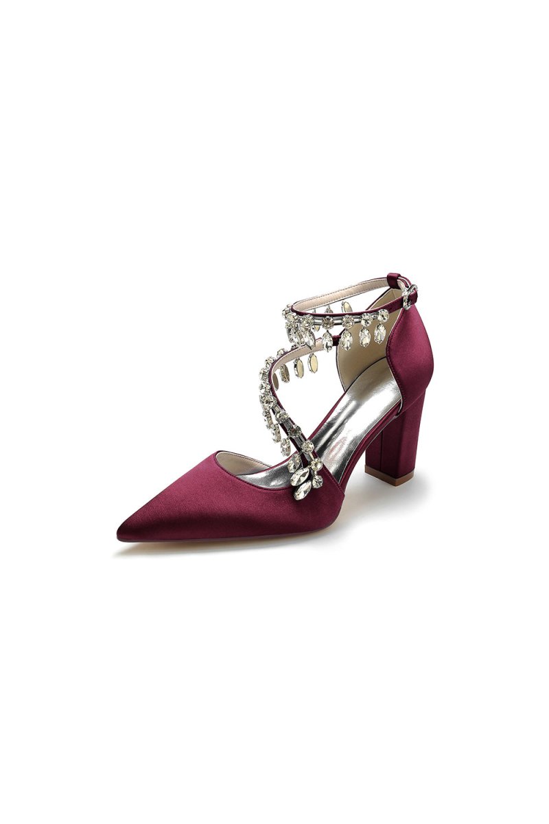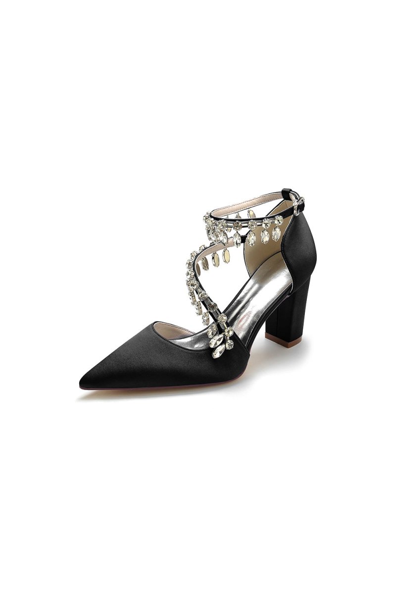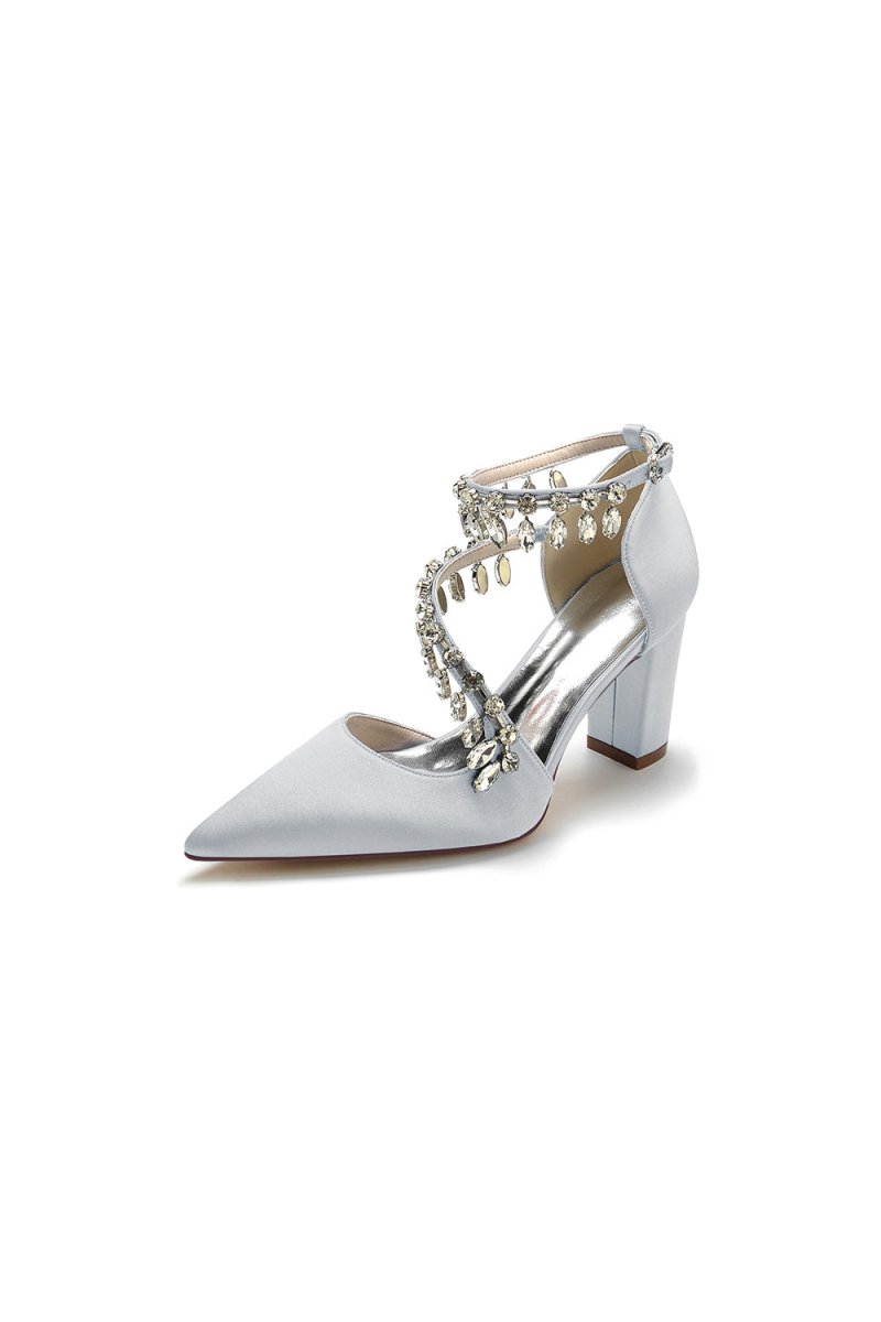 These stunning White High Heels feature a chic chain and crystal accent, perfect for adding sparkle to any look. With kitten heels, a pointed toe, and a slip-on closure, these shoes are ideal for prom shoes, wedding shoes, evening shoes, party shoes, or bridesmaid shoes. Made with satin fabric, artificial leather lining, and a rubber sole, they are perfect for any occasion.