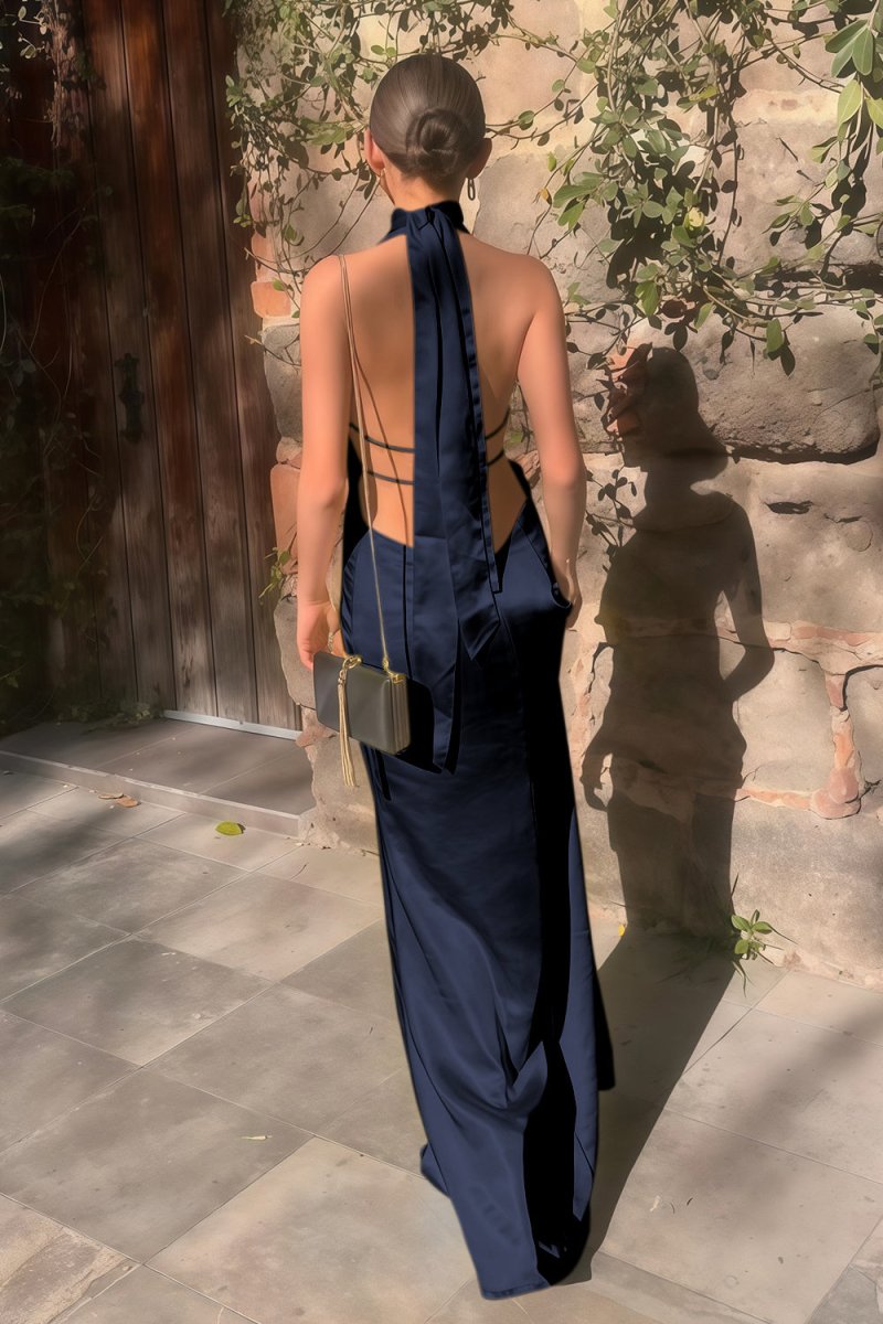 Turn heads with the Nevado Halter Deep V Neck Satin Sheath Prom Dress. Made from luxurious satin fabric, this sleek sheath silhouette highlights your natural curves while offering an elegant, smooth drape. The deep V-neck halter design adds a daring touch, balanced by the refined simplicity of its sleeveless, floor-length cut. The lace-up back not only enhances the backless style but also ensures a perfect, adjustable fit. Available in both yellow and pink, this gown captures attention with its radiant tones and silky finish. Perfect for evening dresses or formal dresses occasions such as prom nights, galas, or weddings.